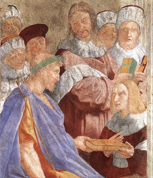 İçeri giren Tribonian’ın yanında bu çalışmada komisyon başkanlığı yapmış, üniversitenin en büyük bilginlerinden üç kişi vardı. İçeri girer girmez hepsi imparatorun ayaklarına kapandılar.