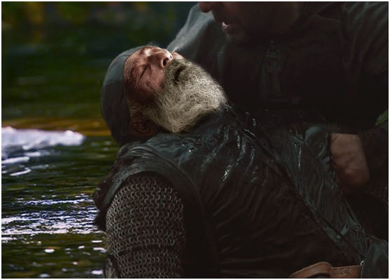 Aradan birkaç saat geçip dönmeyince oğlu merak eder. İmparatorla giden muhafızlardan biri, “Majesteleri çok yakında efendim. Bir nehrin kenarında durunca bizi geri gönderdi,” der. Babasının bu tarz davranışlarına alışkın olan Frederich bir süre daha babasının dönmesini bekler. Sonunda dayanamaz, muhafızı alarak yola çıkar. Göksü Nehri’ne varınca atı görürler ama imparator ortada yoktur. Nehre doğru gittiklerinde, havuzun için yüzün koyun yatan Barbarossa’yı görünce oğlu, “Baba... Baba...” diye bağırarak koşar. Suya dalarak babasının cansız bedenine ulaşır. Muhafızla birlikte hemen ters çevirirler ama yapacakları bir şey kalmamıştır. Atın üzerine yatırırlar ve karargaha geri dönerler.