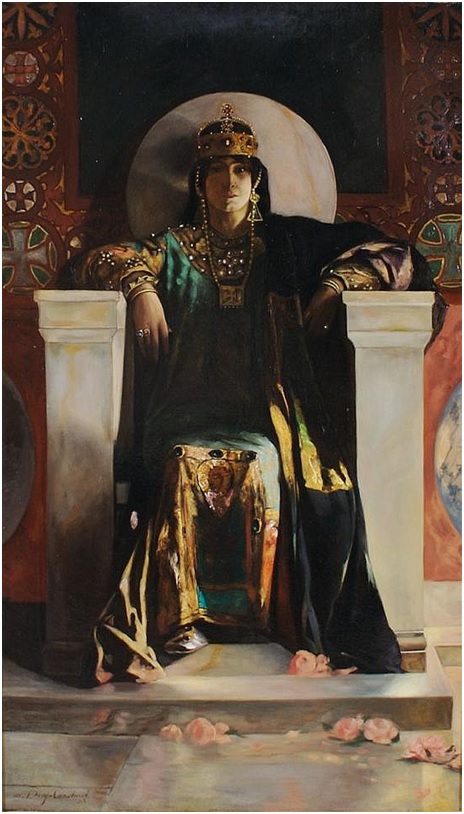 Tam o sırada toplantı salonunun kapısı açıldı, İmparatoriçe Theodora başında tacı, üzerinde erguvan rengi imparatoriçe peleriniyle içeri girdi ve onu biraz da hayretle seyreden imparator ve müşavirlerinin karşısına dikildi.